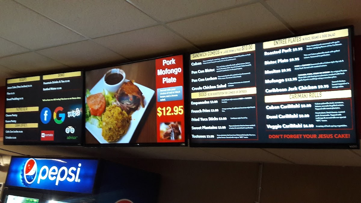 - Sides: A selection of Caribbean side dishes is available, including empanadas filled with Caribbean-style beef, fried yuca sticks, sautéed sweet plantains, and tostones (double-fried green plantains) served with mojo or signature sauce.